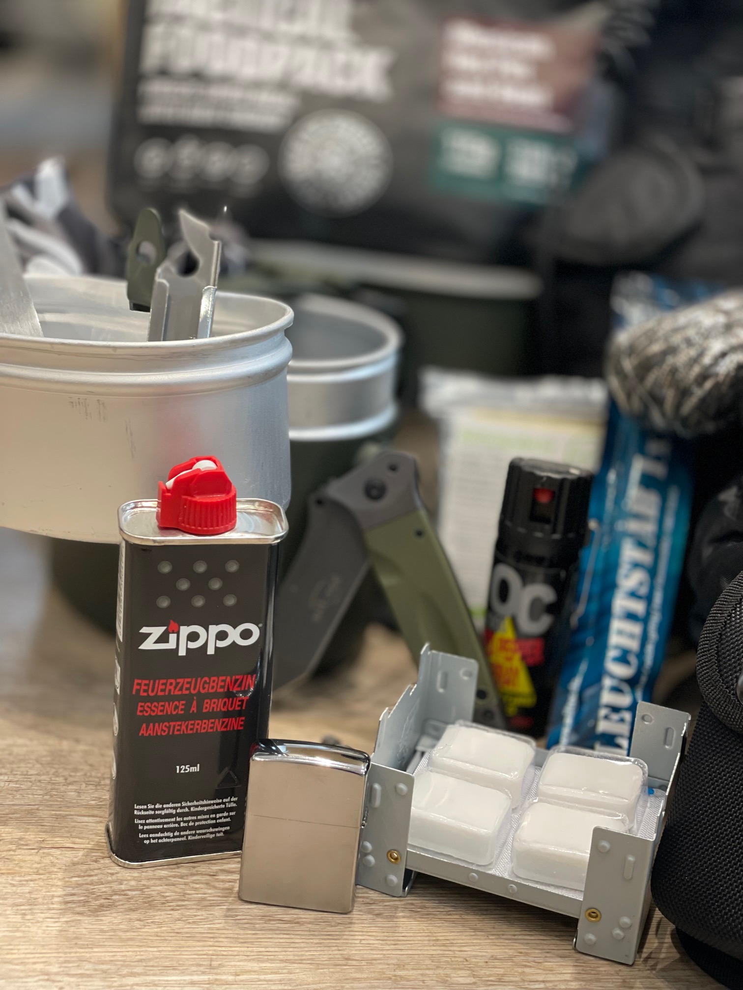 - Zippo-Feuerzeug mit Original-Benzin (125 ml)