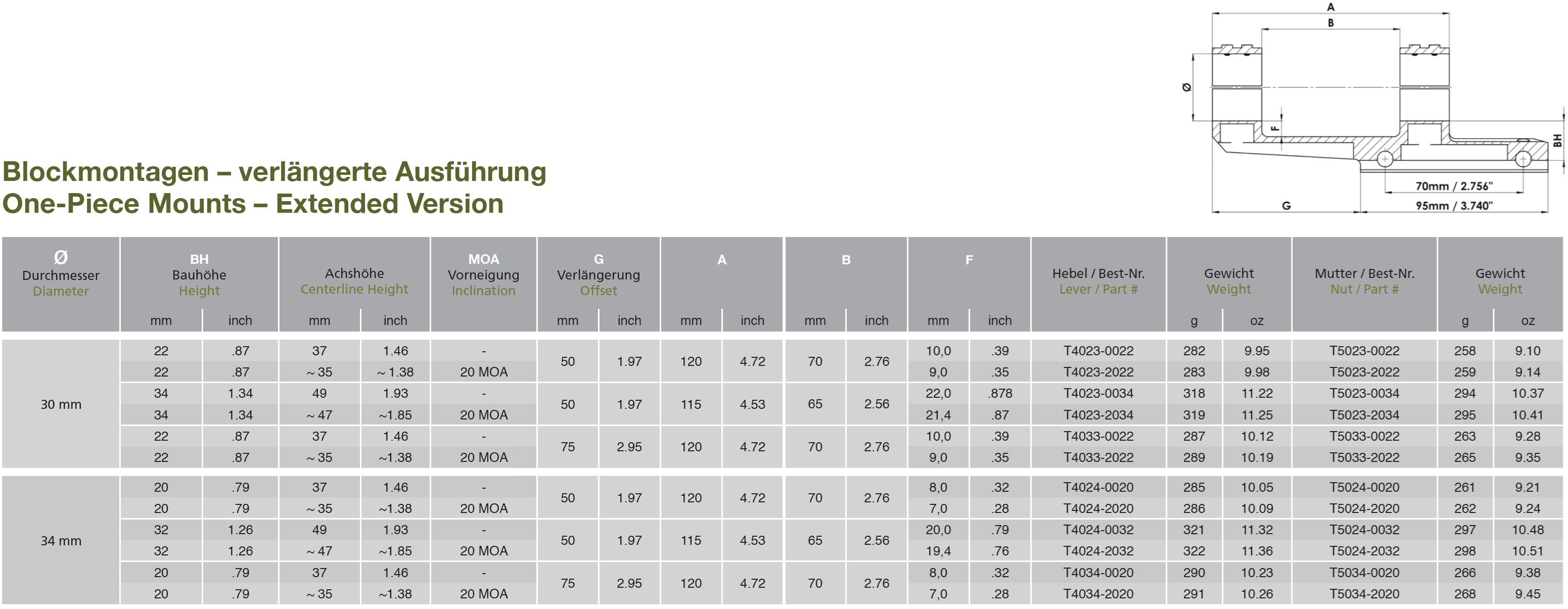 Die Montagen mit 2“ und 3“ - Verlängerung eignen sich besonders für Waffen des Typs AR15.. Die 95 mm lange Auflagefläche sorgt für satten und spielfreien Sitz auf der Picatinny-Schiene.