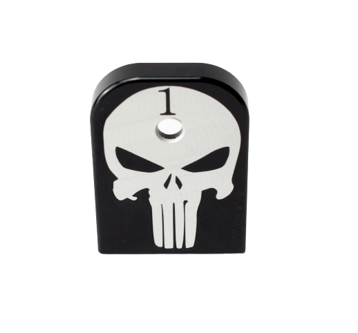 Das Glock Magazin Base Plate aus gefrästem Aluminium mit Punisher Motiv ist