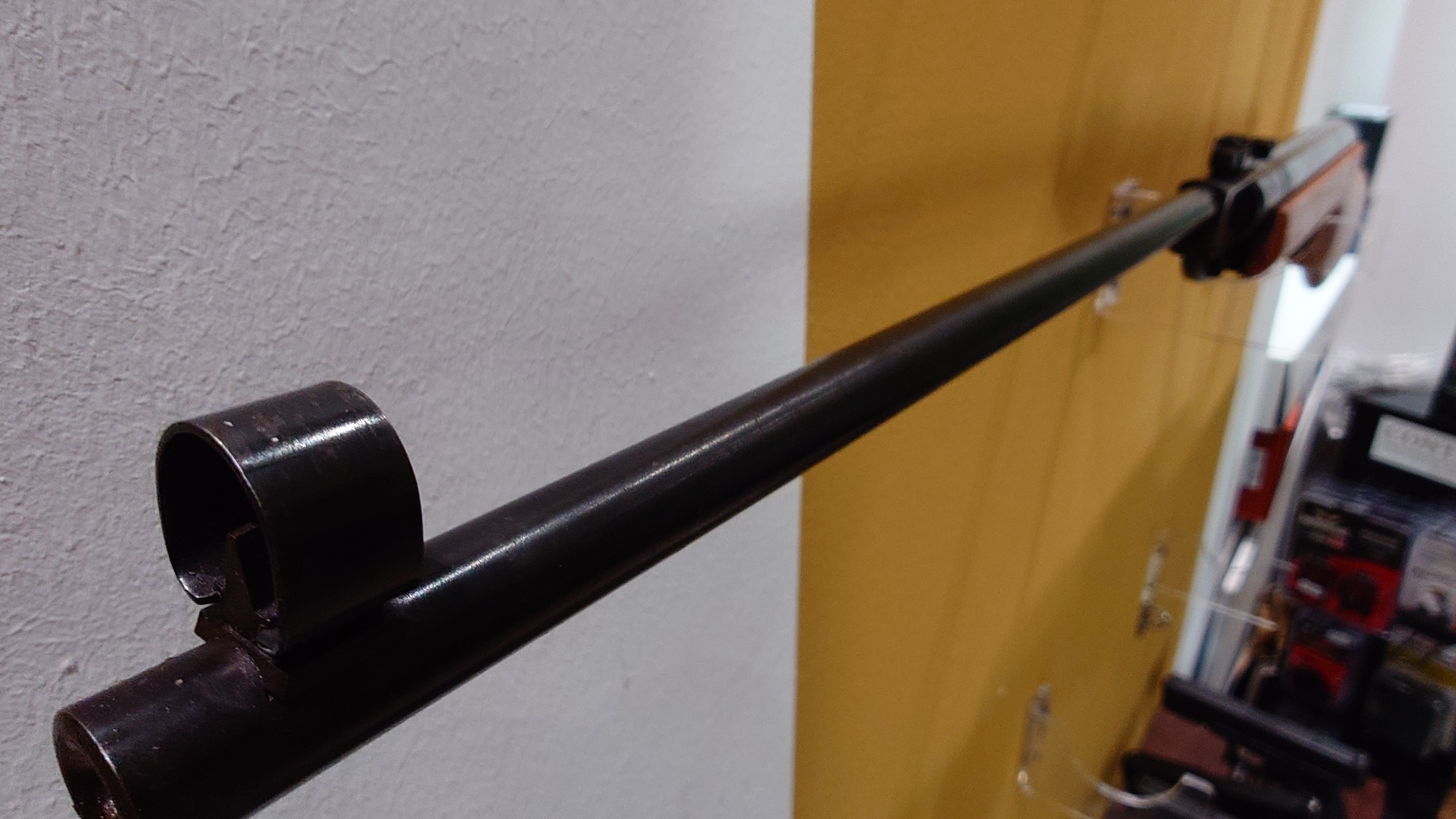 Der 450 mm lange, gezogene Lauf ist brüniert, die Visierung erfolgt über Kimme/Korn