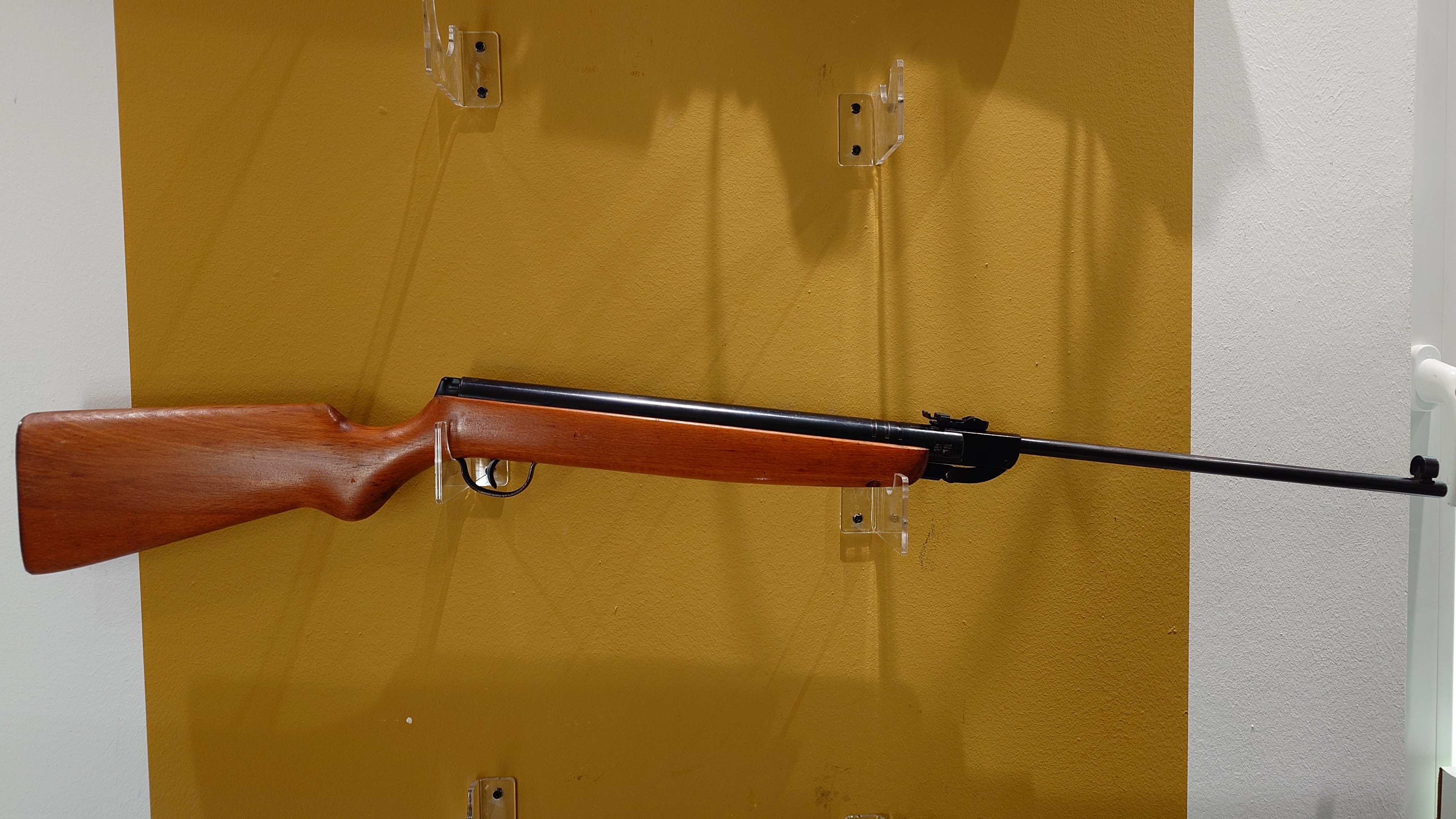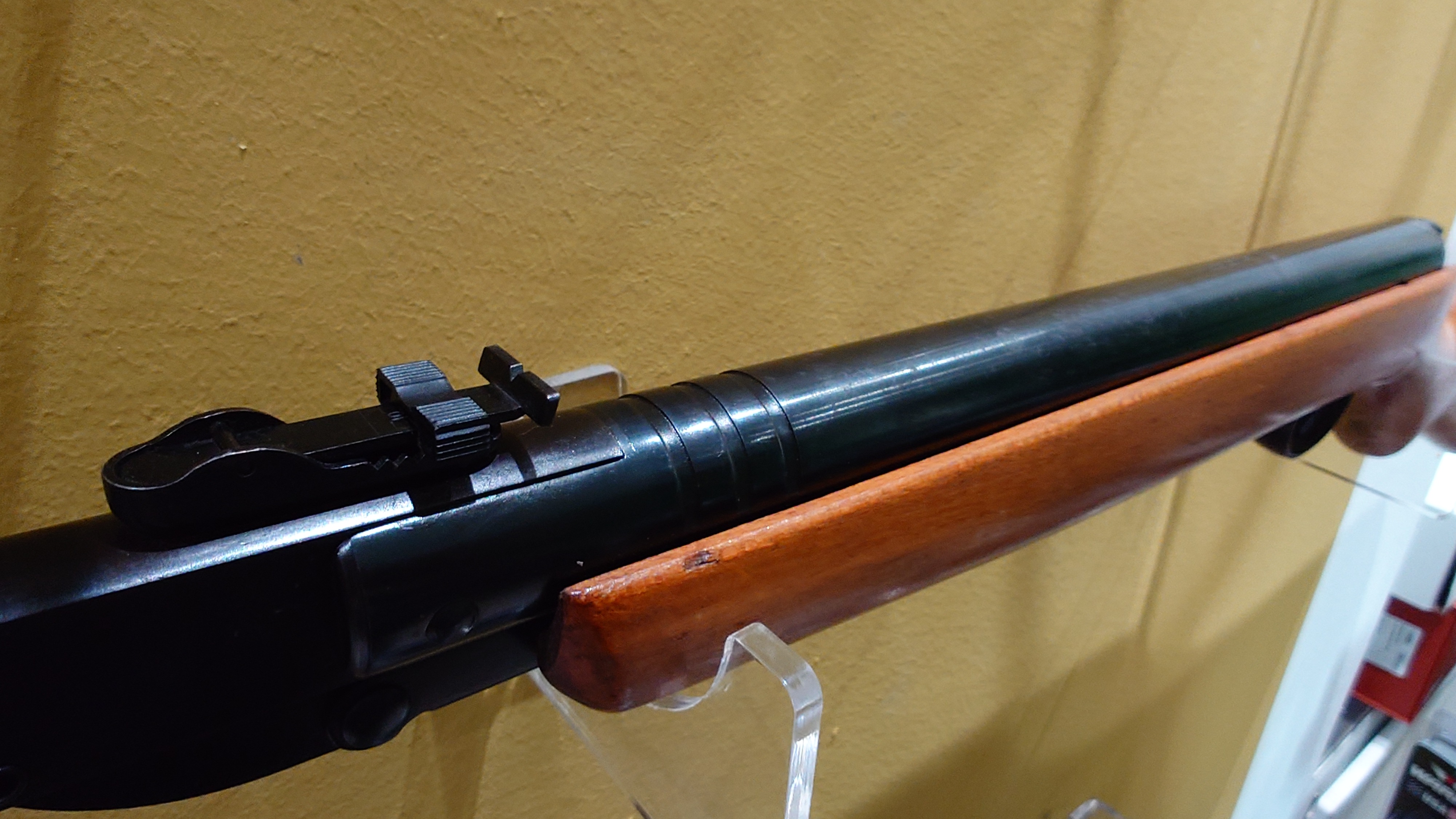 Angeboten wird dieses Luftgewehr im Kaliber 4,5 mm mit Federdrucksystem.