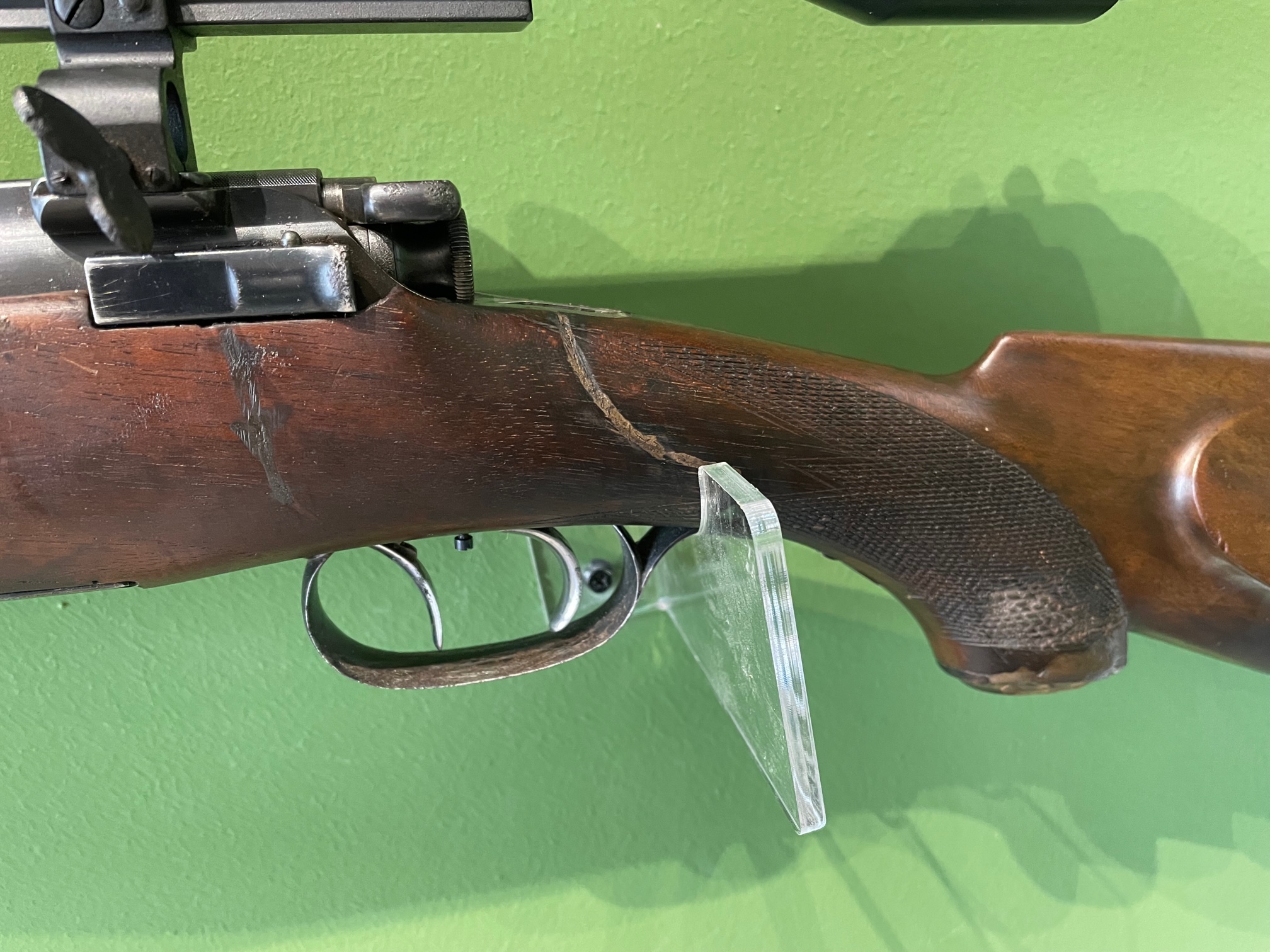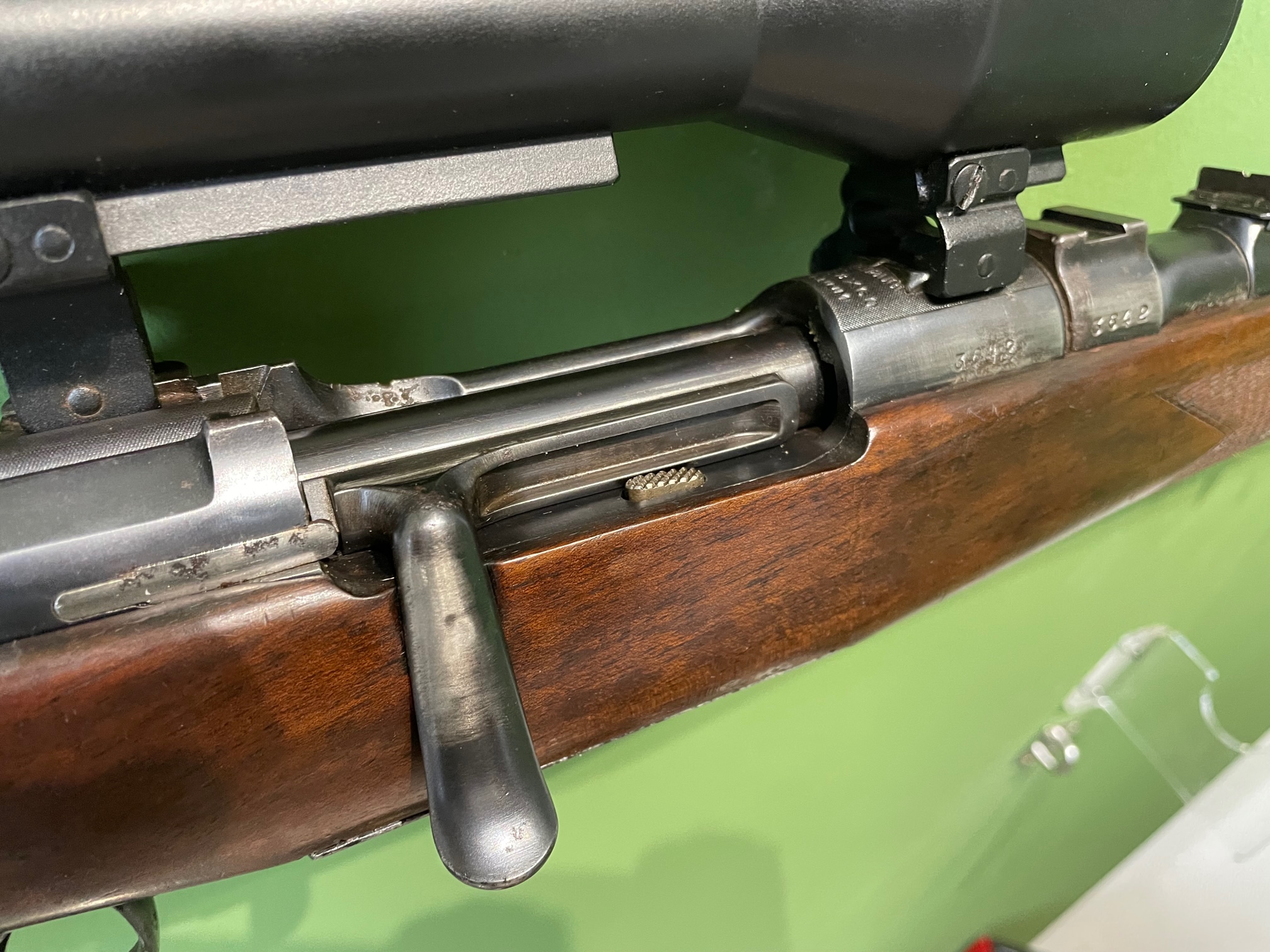 Krieghoff-Montage. Die Waffe verfügt über einen deutschen Stecher.