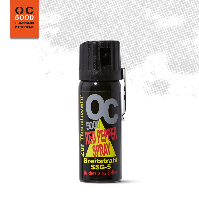 Die OC 5000 Pfeffersprays basieren auf Cayenne Pfeffer dem Oleoresin Capsaicin. Auf Nase, Auge und Schleimhäute hat es eine sofortige, stark reizende Wirkung, ist aber völlig natürlich und ungiftig. in Deutschland wird hauptsächlich von der Polizei Pfefferspray gegen Menschen verwendet, da es wirksamer als CS-Spray ist und auch bei Alkoholisierten und unter Drogen stehenden Menschen sehr zuverlässig wirkt.