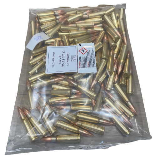 PPU BÜCHSENPATRONEN 7,62 x 39 FMJ - 123 GRS - 100 SCHUSS BULK