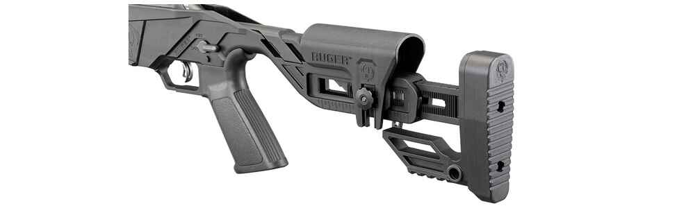 Die Precision Rimfire aus dem Hause Ruger besitzt einen verstellbaren Schaft mit Ruger AR-Pattern Pistolengriff und einem verstellbaren Ruger Marksman Abzug.