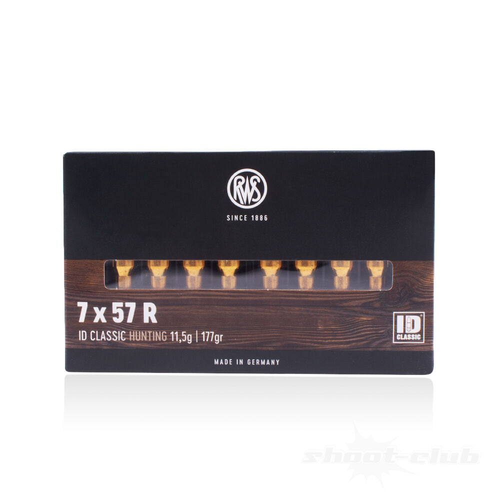 Die RWS 7x57 R ID Classic ist eine erstklassige Büchsenpatrone und eignet sich hervorragend für Entfernungen bis ca. 180 Meter. Sie kann idealerweise für die Jagd eingesetzt werden sowie als Hochwild-Patrone für mitteleuropäisches Wild. Gewöhnlich kann man mit dieser Patrone eine geringere Hämatombildung verzeichnen als mit anderen rasanten und schwächeren Kalibern..