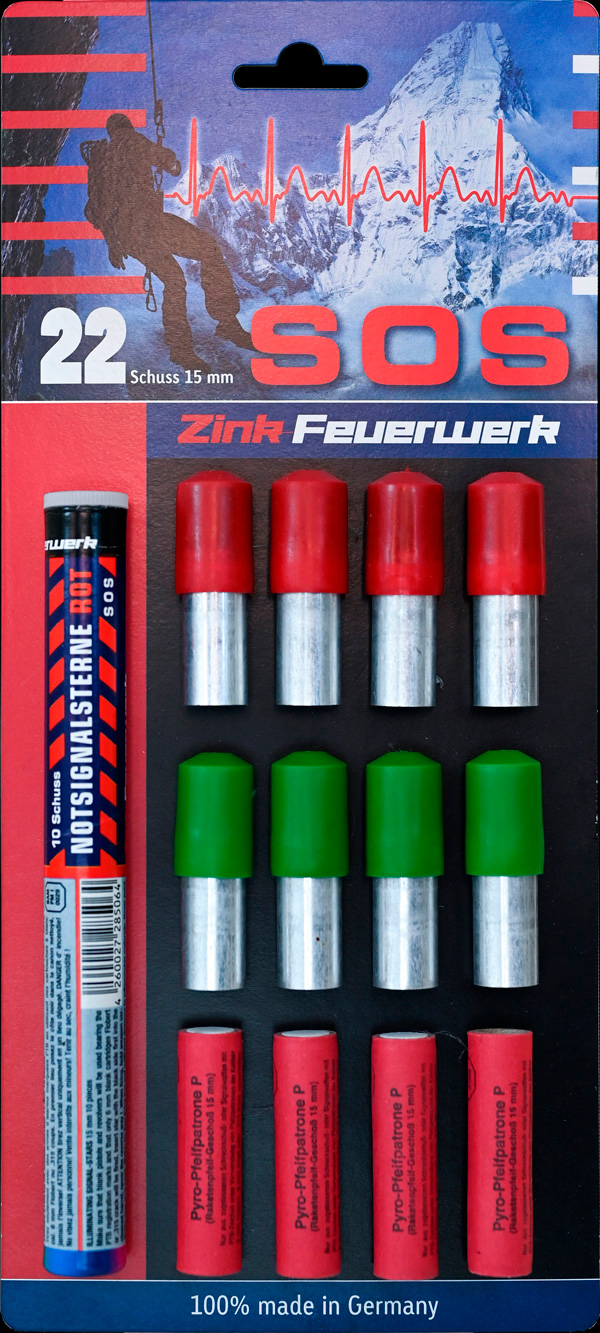 Das SOS Sortiment von Zink besteht aus ingesamt 22 Effekt-/Signalmunitionssorten.