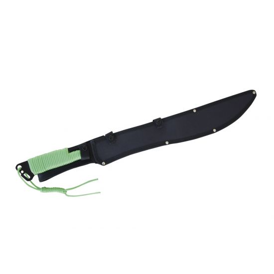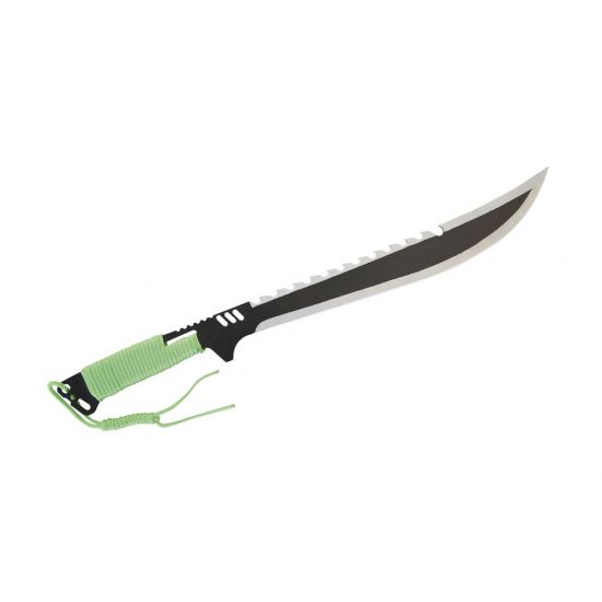 Die MP9 Machete wurde aus 420er Stahl gefertigt und verfügt über eine Sägezahnung im Klingenrücken. Der Griff mit seiner Nylonwicklung sorgt für ein sicheren Halt und gibt der Zombie Machete das gewisse optische Extra. Im Lieferumfang ist eine Nylonscheide mit Gürtelschlaufe vorhanden.